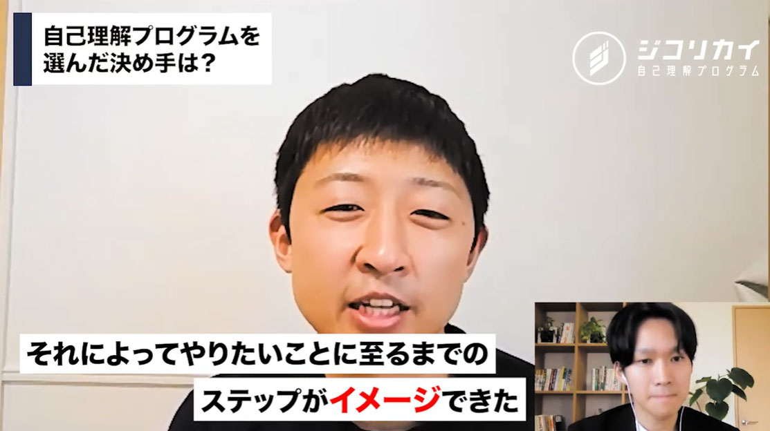 「今」という瞬間で切り取れば、自分は人を活かすこと、つまり人事に興味を持っていることが納得できたんです。 自分のやりたいことや力の向けどころを見つける上で、このプログラムで良かったポイントはどこでしたか? 他の本なんかでは、やりたいことから制約なしに考えてみようっていうやり方が一般的だと思うんです。 でも八木さんのプログラムの場合は、まず自分の得意なこと、持っている武器を自覚し、やりたいことを見つけていくという流れでした。 自分のことを客観的に見ることで自分の武器を把握し、それによって自分に対する自信を持つことができました。 その上で、どこに向かいたいのかが分かるようになっていくという順序で進められたのは良かったです。 自分のやりたいことが見つかりやすい感覚っていうのはありましたか? 自己分析というのは自分と内面とのことですから、1人でも完結できることだと思います。 質問に答えながら得意なことを見つけ、次に好きなこと見つけるという進め方もできると思うんです。 そんな中で、わざわざお金まで払ってプログラムを受講するメリットって、何だと思われますか? それによって自分で導いた答えをしっくりきている表情で言っているのかジャッジをすることができました。 これは、人の力を借りてやるプログラムの一番のメリットだと思いました。 自分1人で見つけた自分の強みに対しても、実はそれ以外にも良いものを持っているかもしれません。 それを、外から見ることで気付くことも往々にしてあると思うのです。 自分の出した答えに対して筋が通って、より納得感が得られることがこのプログラムの良さだと思います。