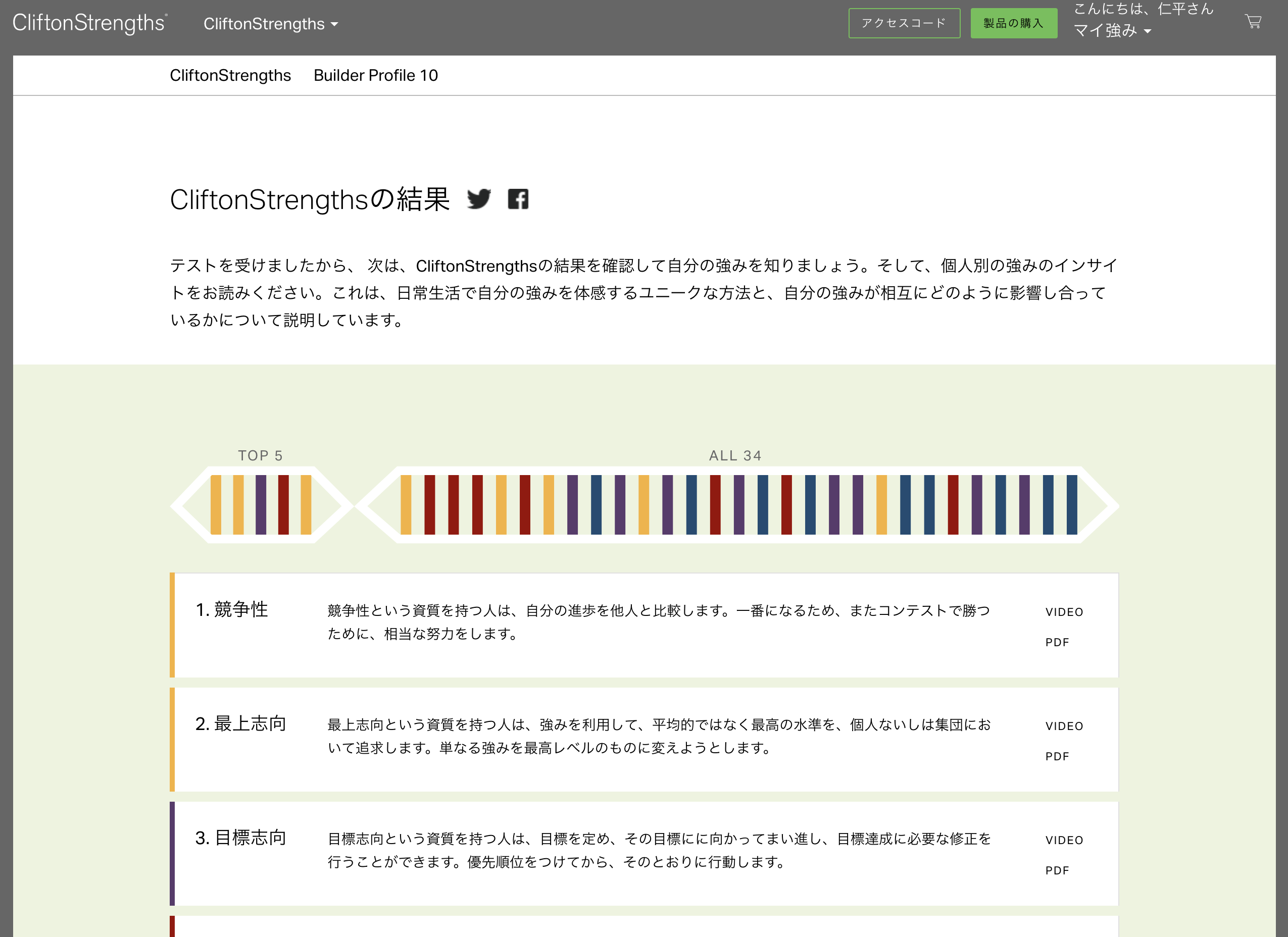 ストレングスファインダーの結果はストレングスファインダーを提供しているギャラップ社のサイトにログインすることで確認できます。